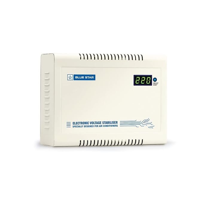 The Blue Star VS413DTA-GT is a 4 kVA double-boost voltage stabilizer designed mainly for air conditioners up to ~1.5 ton capacity. It protects your AC from wide fluctuations in supply voltage and helps ensure stable, safe operation (working range 130-280Volt With digital Display).
