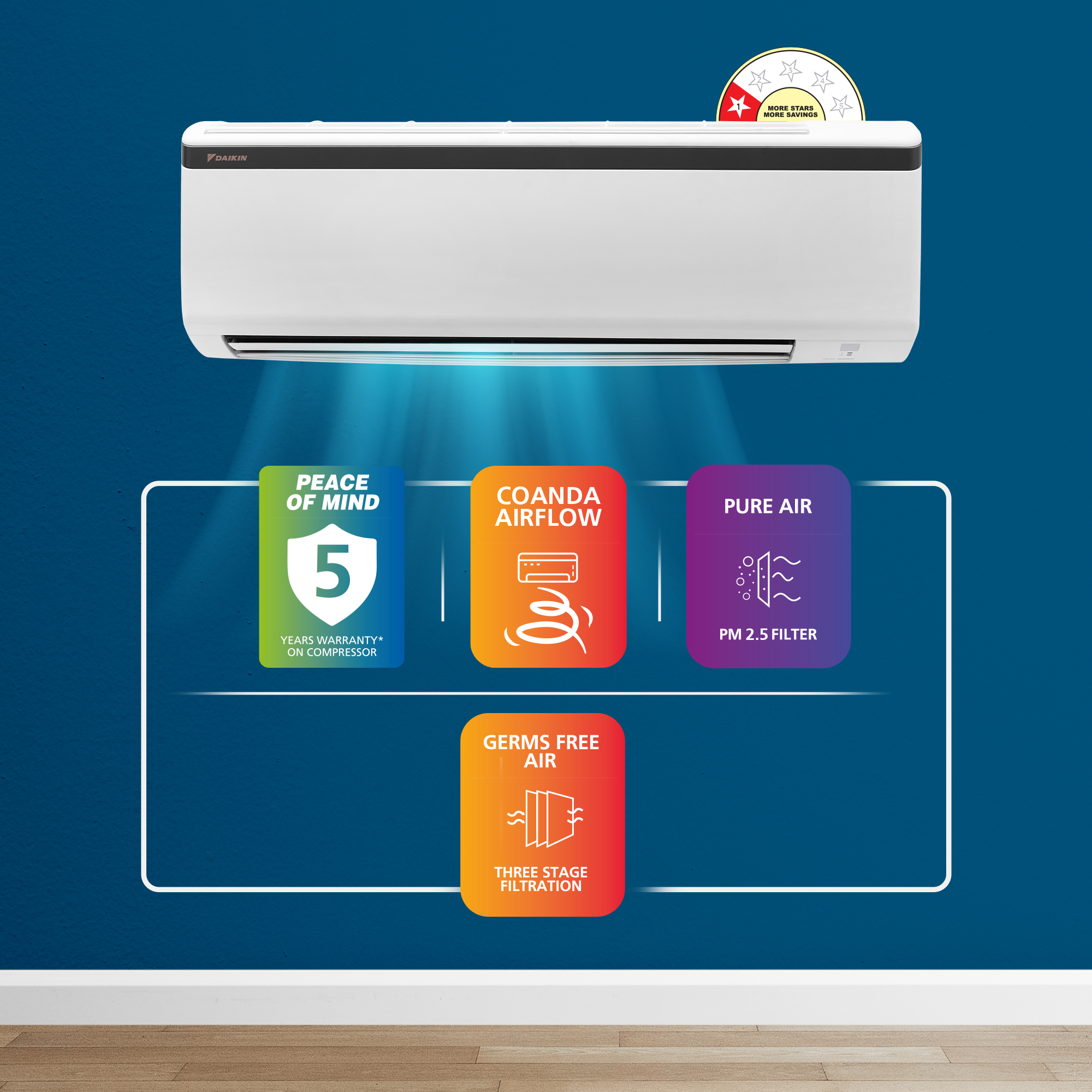 Live a worry-free life with Daikin’s Anti Corrosion Treatment. Daikin ACs come with a special coating which prevents the rusting of the copper coil, thus, ensuring a long life of your device and eliminating your trouble.