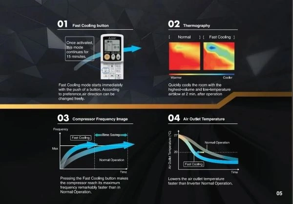 - Fast Cooling Mode – Rapidly cools rooms on extremely hot days.
